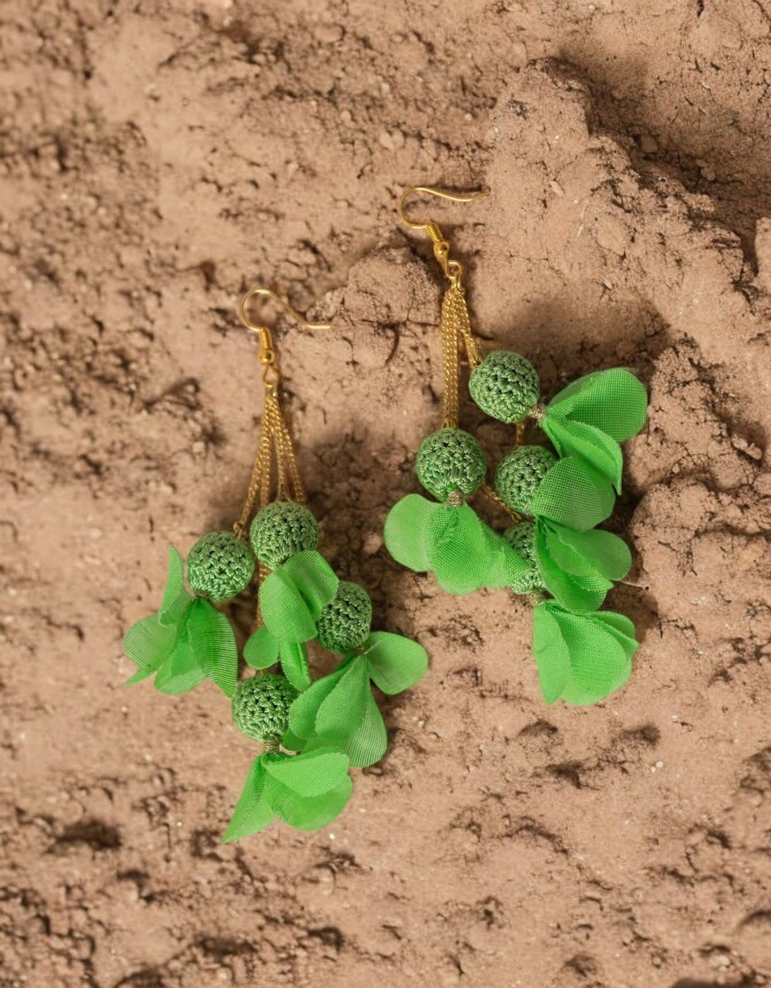 Make a statement with these stunning shoulder-length crochet earrings, perfect for elevating a simple outfit. A touch of metallic shimmer adds a sophisticated sparkle, making them a chic choice for any occasion.